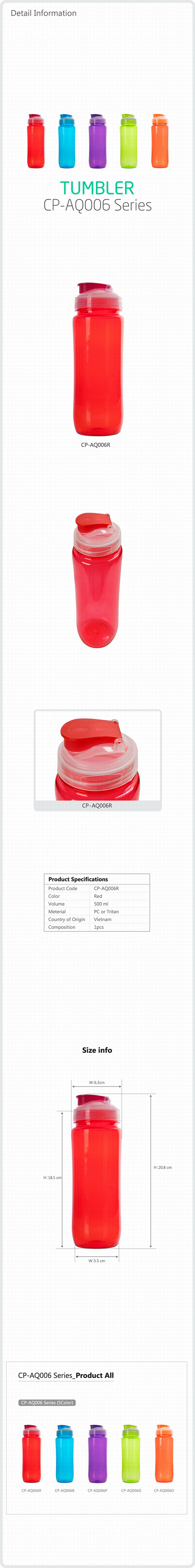 Bình đựng nước DongHwa 500ml (màu đỏ) 001