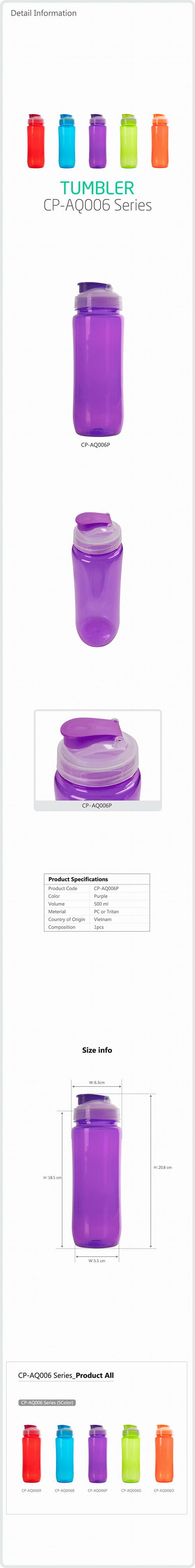 Bình nhựa đựng nước 500ml (màu tím) 002