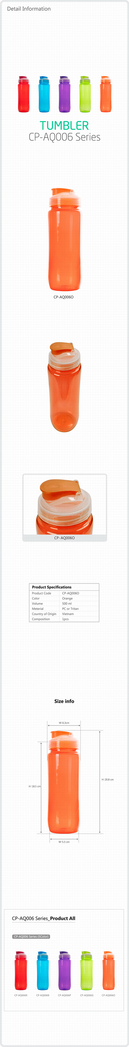 Bình nhựa đựng nước 500ml (màu cam) 003