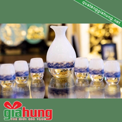 Bộ bình ly cốc uống rượu dát vàng lá 24k 048