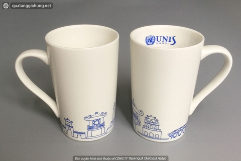 Cốc sứ in logo bên trong lòng cốc của UNIS